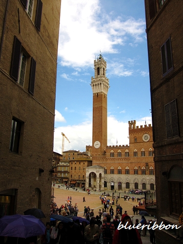 跟小巧的San Gimignano比起來,Siena是個機能較完整的城邦,包括古老的西耶納大學(很多外國人來念),名牌店也進駐其中。據聞西耶納大學的學生畢業前得爬上市政廳的高塔才能拿到畢業證書,開玩笑,這高塔可是義大利中古世紀塔樓中第二高的(腿軟),幸好我不是念這所!呼~XD