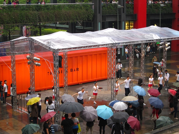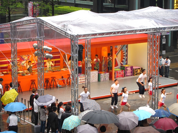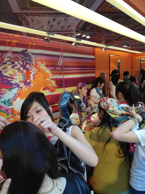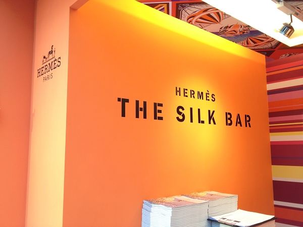 為了使民眾更能了解愛馬仕的熱銷商品絲巾有變化萬千的用途,愛馬仕特別辦了絲巾吧的活動,你可以走進橘色的大貨櫃挑選喜歡的絲巾圖樣,再請服務人員為你做出造型,拍照留念後上傳照片並標上關鍵字,換取絲巾教學卡片組。
